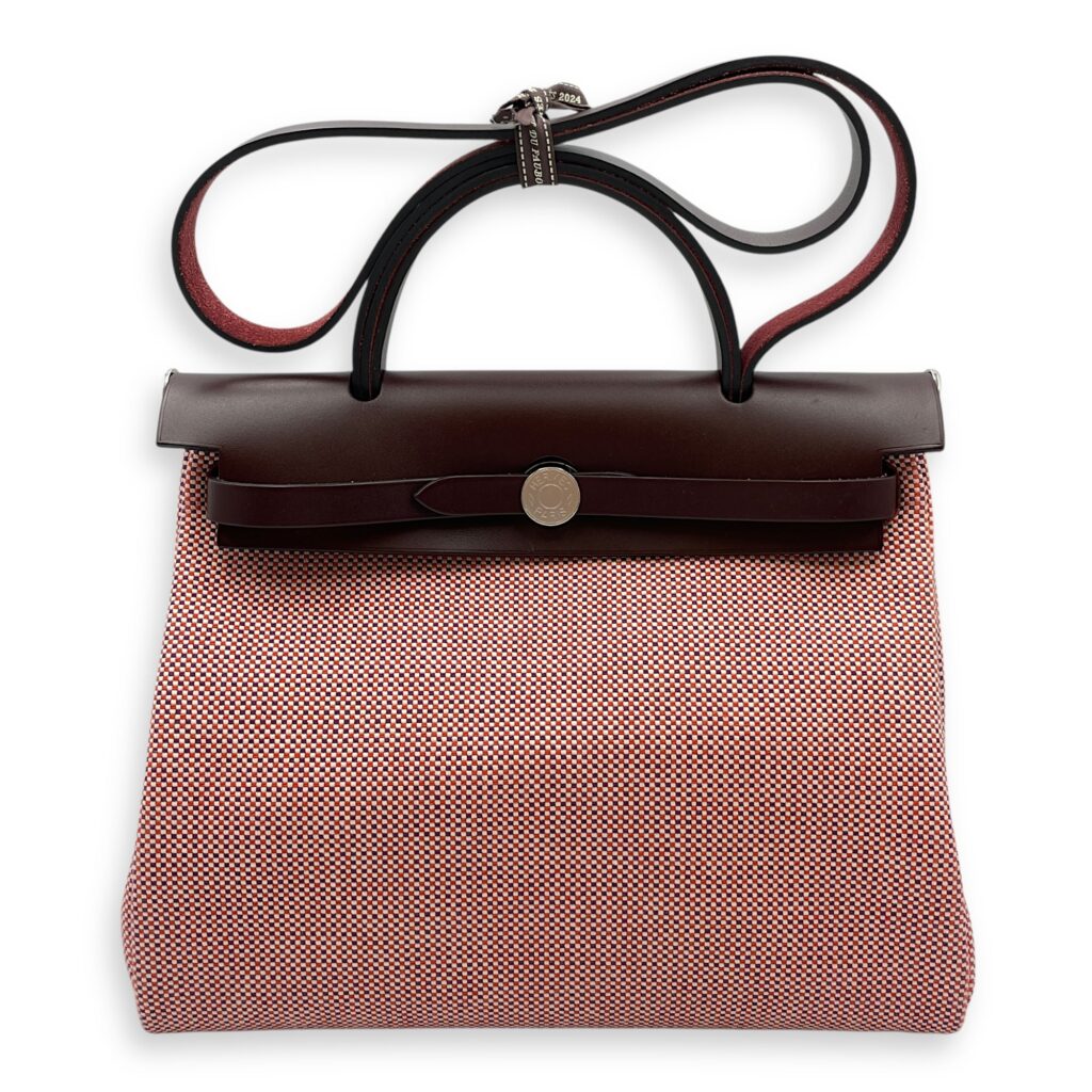 Herbag 31 Rose Pourpre Fauve Shoulder Bag in Canvas, Palladium hardware