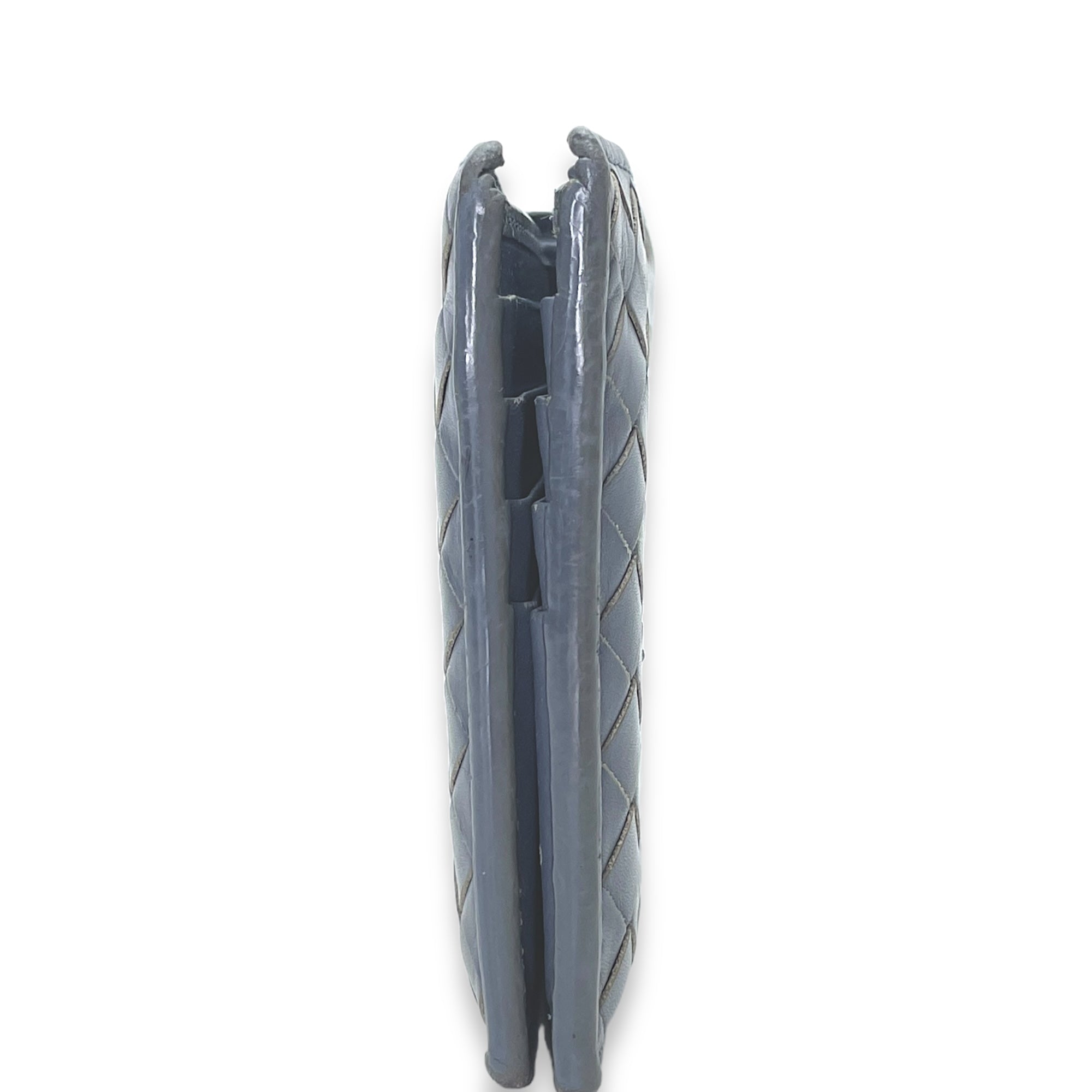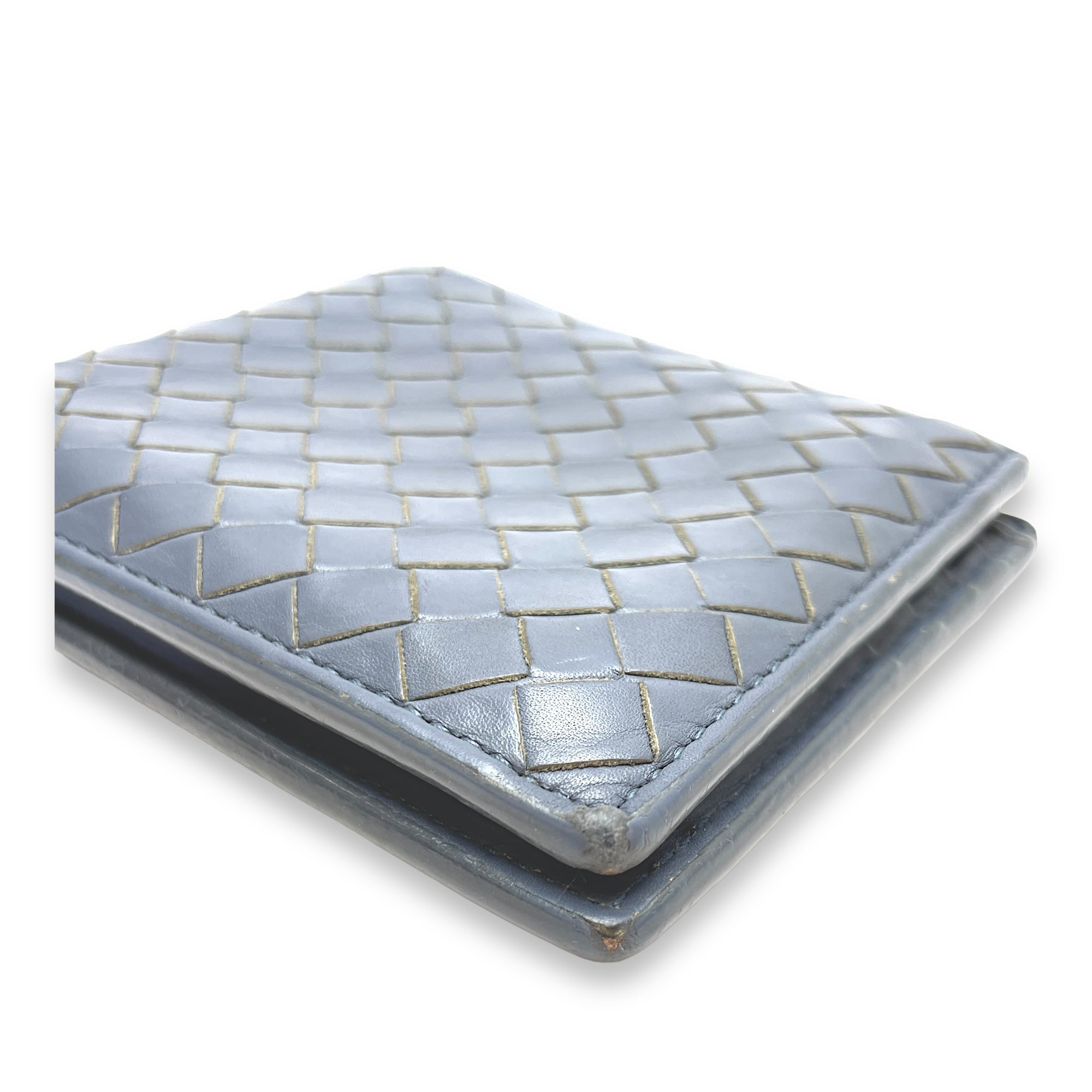 Intrecciato Compact Grey Wallet in Calfskin