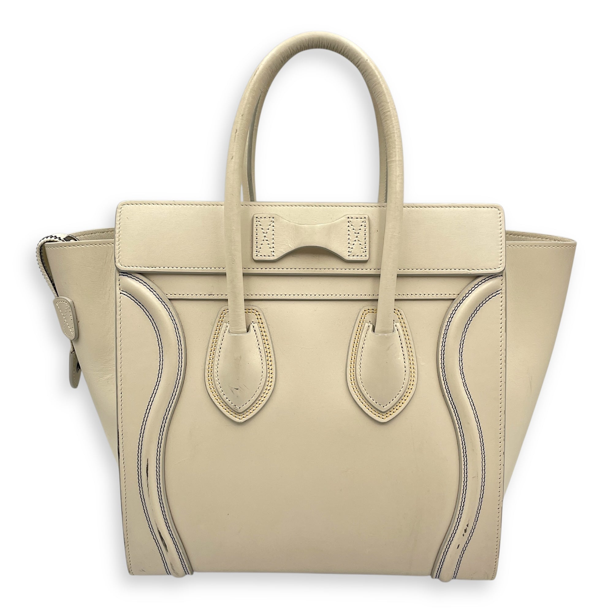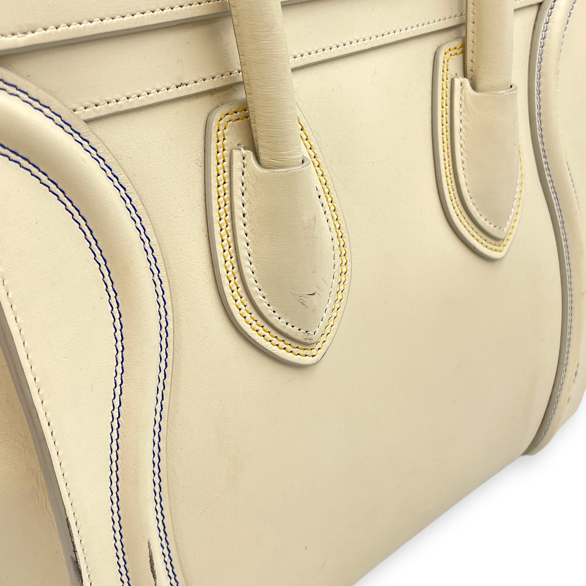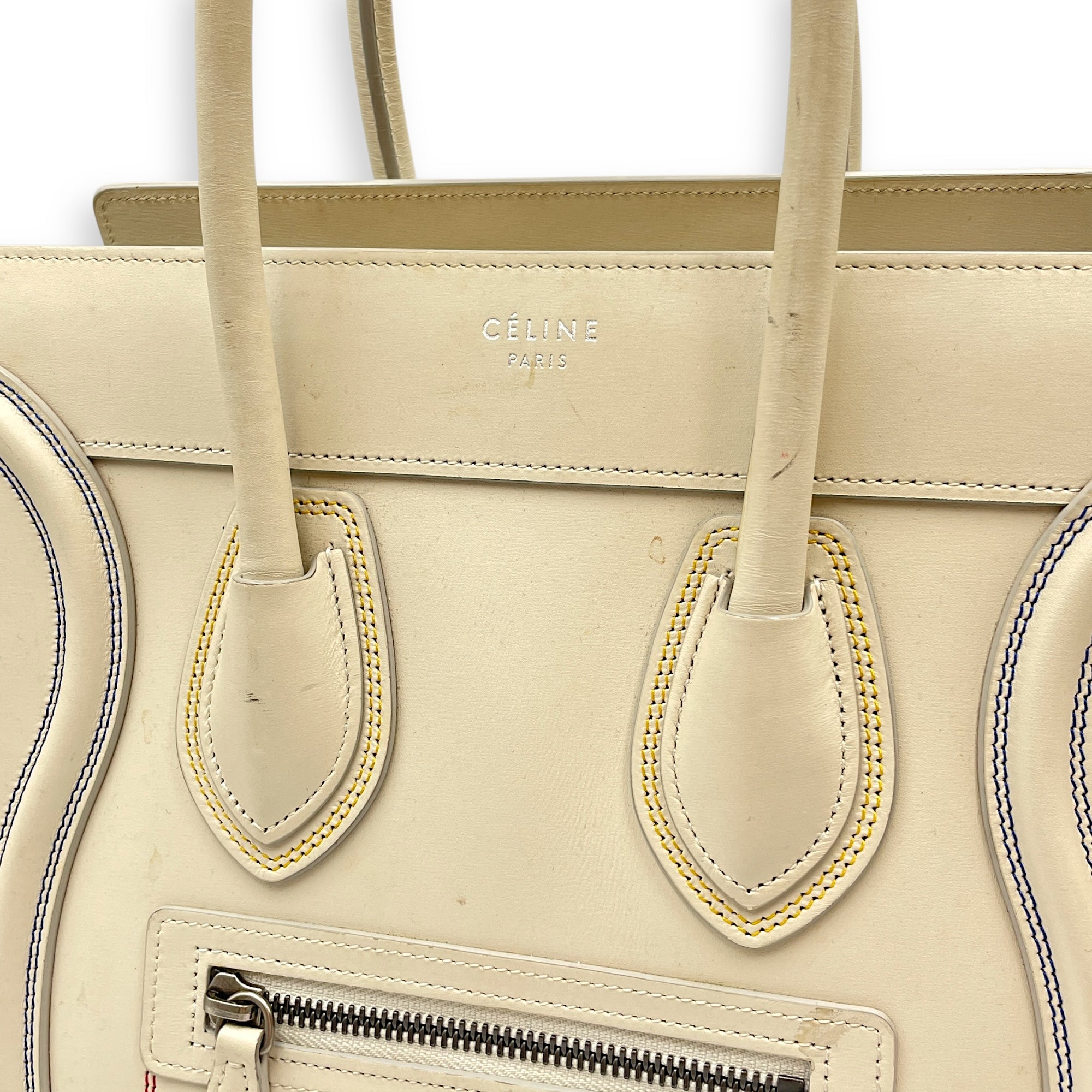 – Surface: Stain and yellowing on the bag – Compartments: Stains on the interior