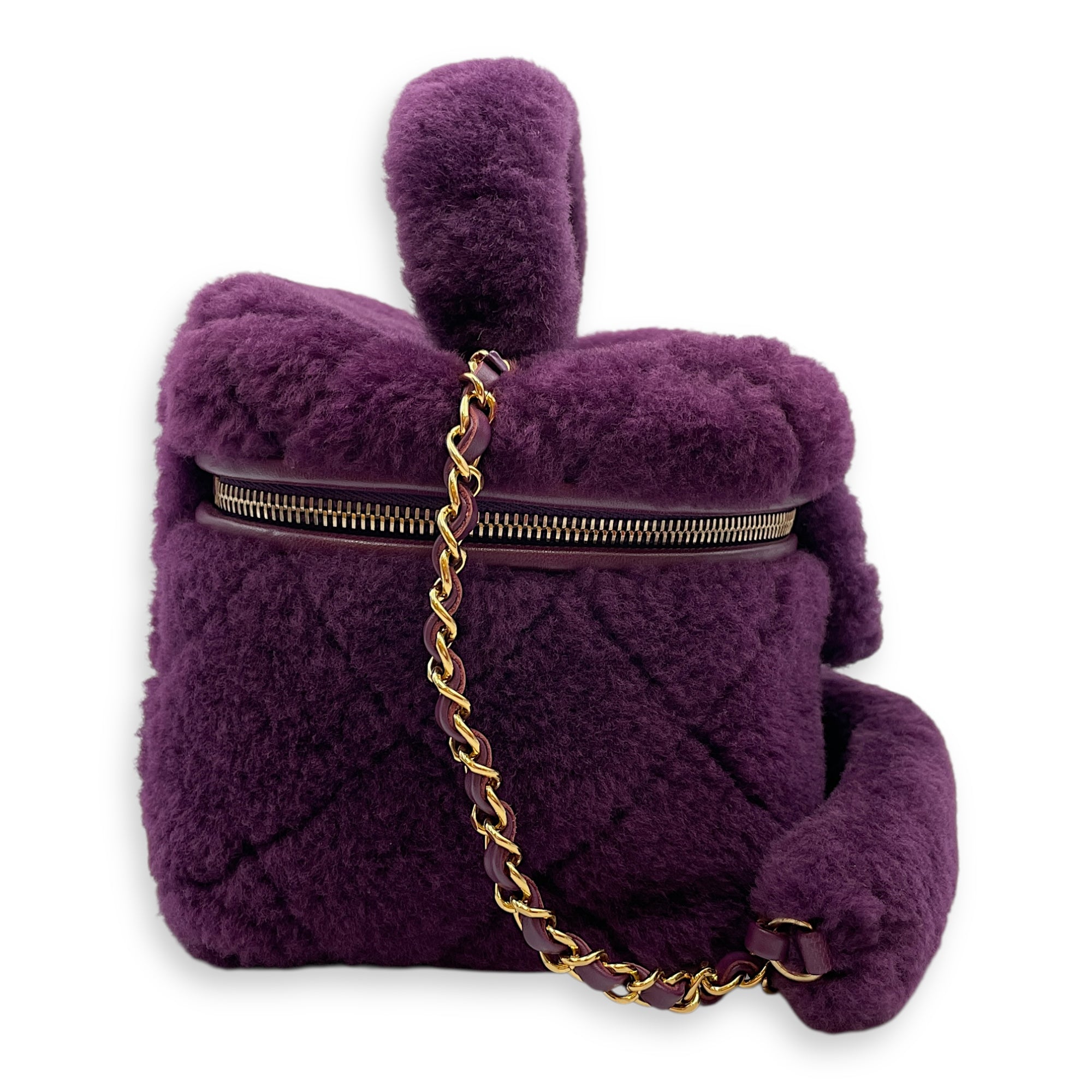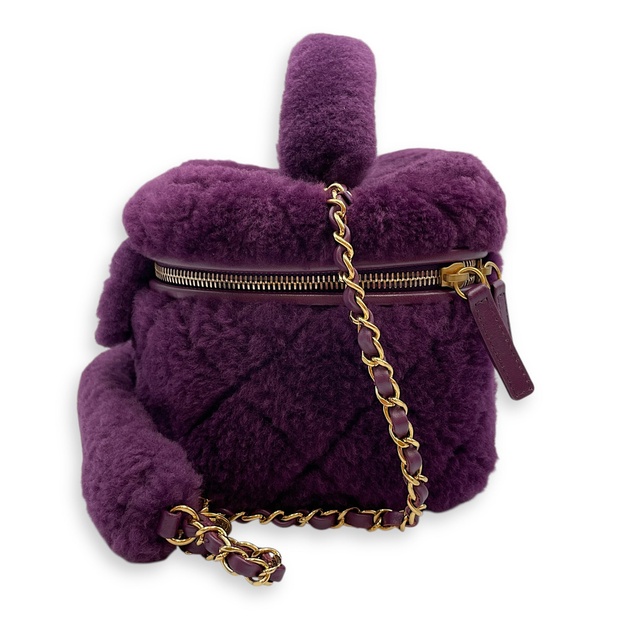 Shearling Quilted Vanity Purple Shoulder Bag in Lambskin, Gold hardware